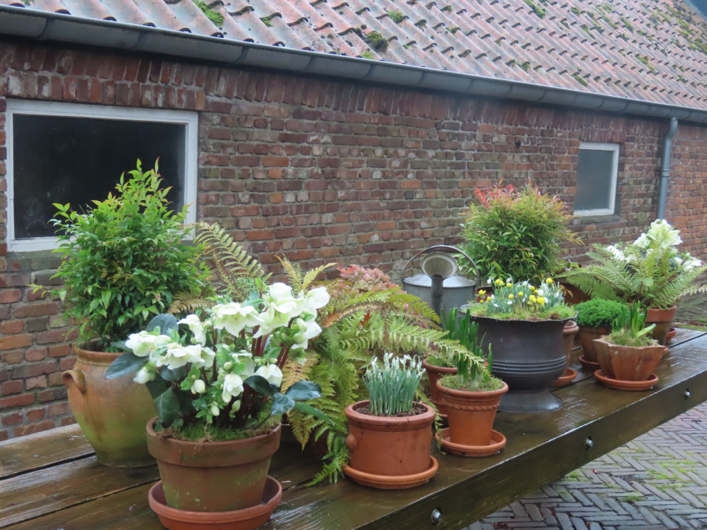 In dit streven naar perfectie wordt Dineke ondersteund door een enthousiast team van vrijwilligers die, deels in de tuinen, deels in de grote schuur, hun handen uit de mouwen steken.
